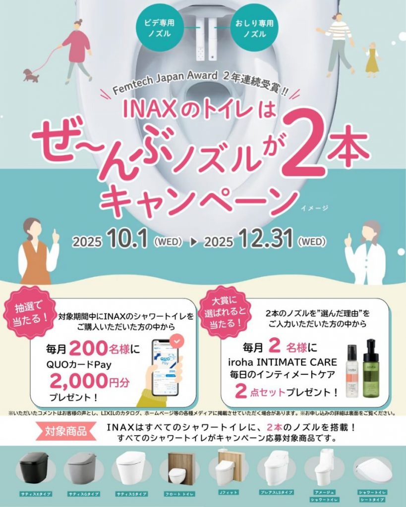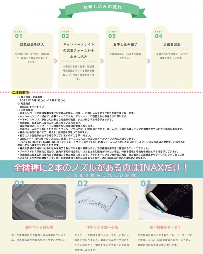キャンペーン詳細はコチラ→https://www.lixil.co.jp/lineup/toiletroom/s/2nozzlecp202510/