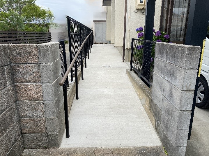 安心して歩ける手摺付きスロープと防犯対策