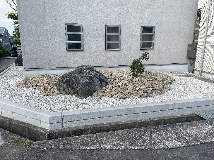 ハチの巣がいっぱいで危険なオープンガーデンを和風ロックガーデンに